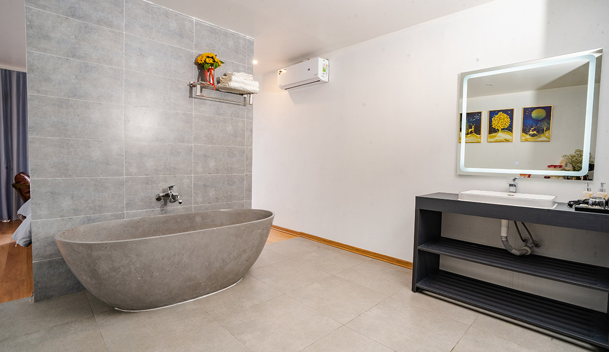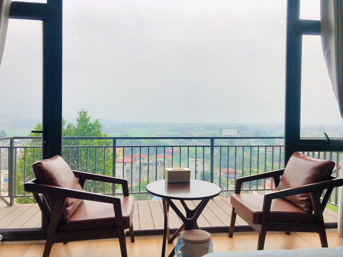 Information: The room belongs to the high-class area with a beautiful view, directly overlooking Nghia Lo town and the top of Suoi Giang mountain. The room is fully equipped with modern equipment, full of amenities such as television, refrigerator, 2-way air conditioner, hot and cold.... In addition, the room is equipped with a Luxury bathtub used to soak human cigarettes. Knife directly in the room. Suitable for couples or families of 2 with small children.